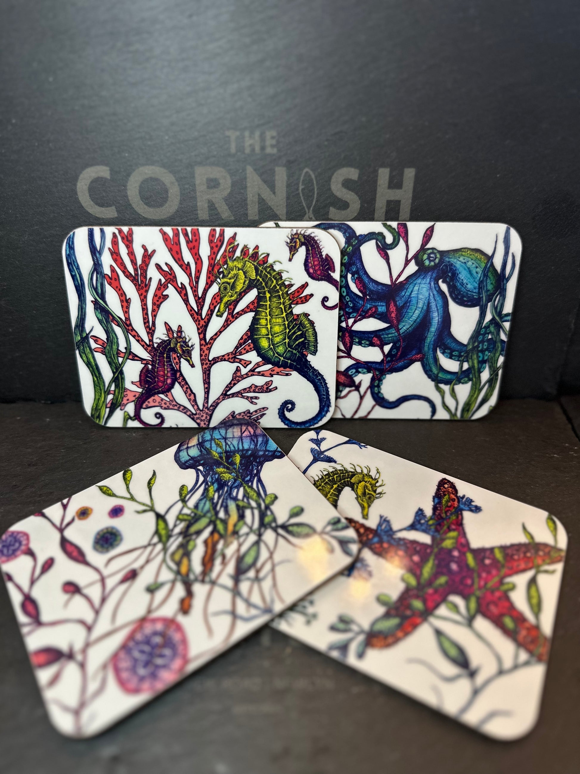 We love how beautifully the reef designs work on this set of four glossy melamine coasters. Each coaster has a different element of Cream Cornwall's gorgeous sea creature drawings and are sure to make your meal times even more pleasurable.